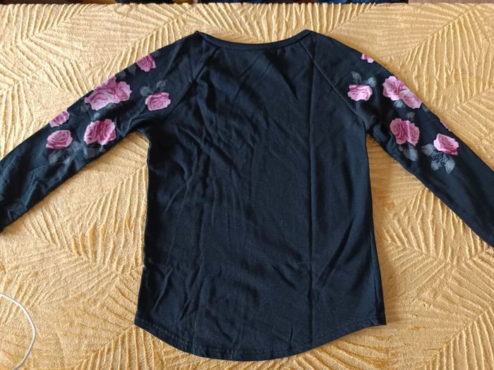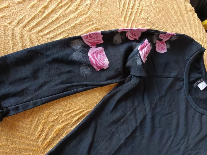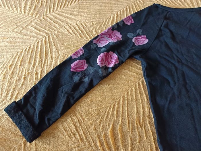 Pull manches 3/4 avec des roses roses sur les manches Divided