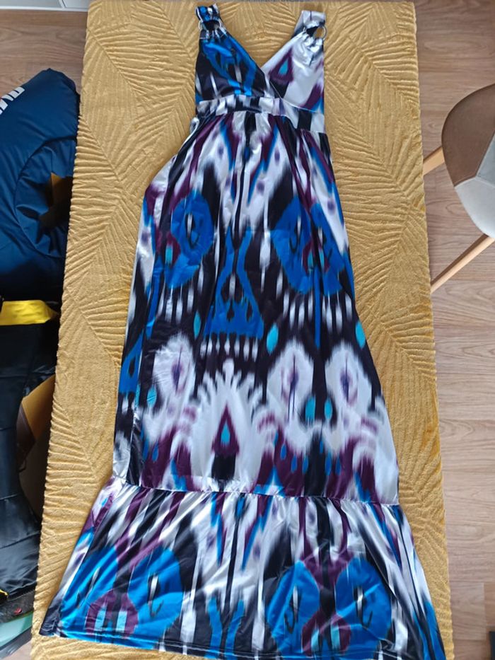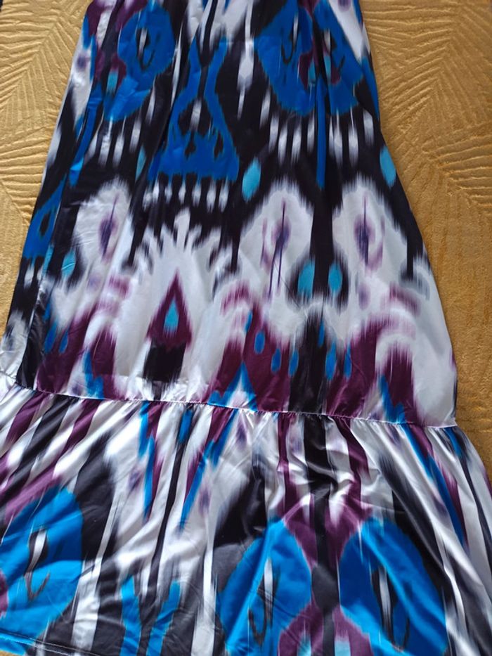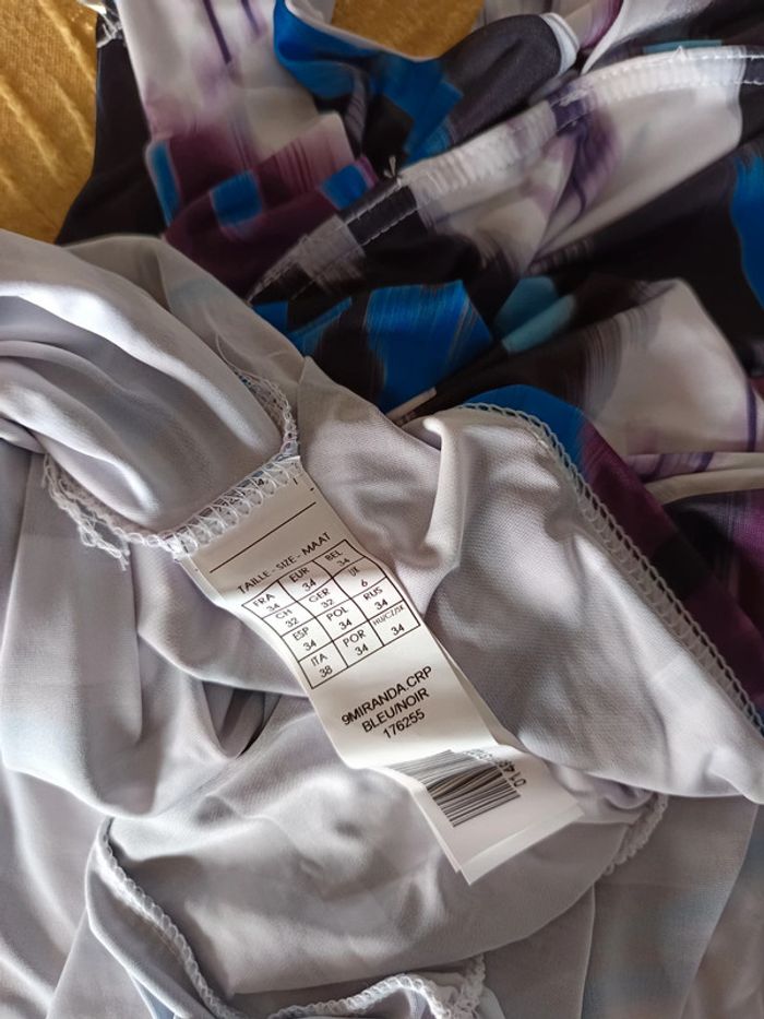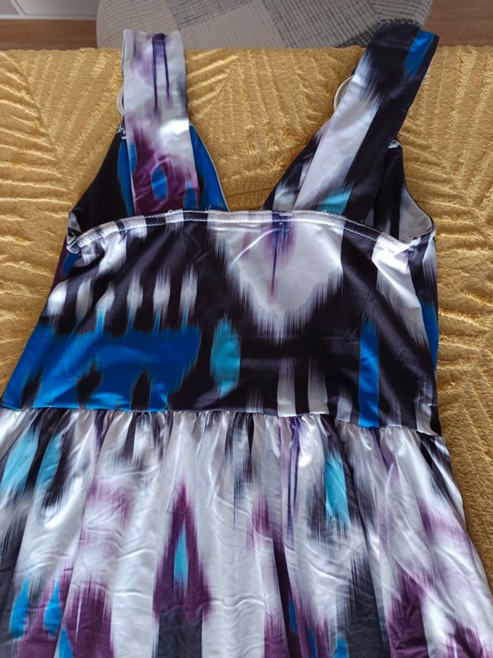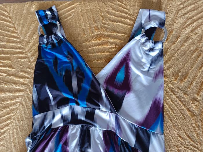 Robe d'été bariolé noir, blanc, bleu et violet. Très peu porté