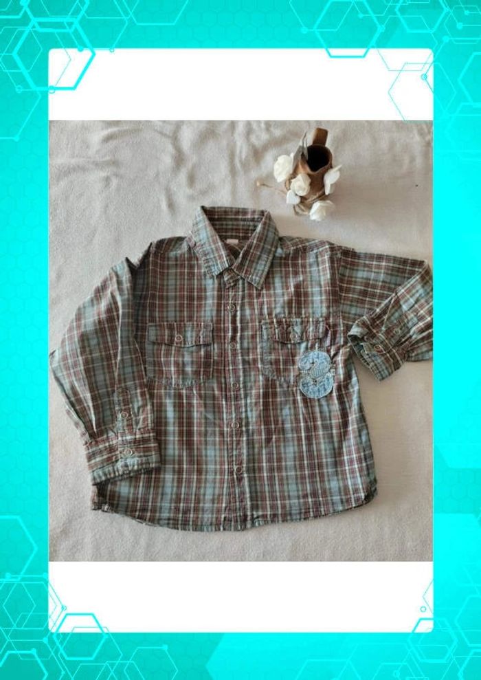 Belle chemise manches longues 2 petites pochettes sur le torse Motif en relief dans le dos ainsi que sous la pochette gauche Fermeture par pressions Mesures sur les dernières photos Taille notée : 98/104cm Marque : non notée mais Zeeman Réduction sur les lots activée #4ans_laurence8777