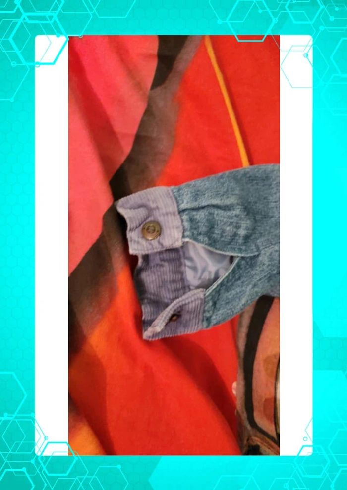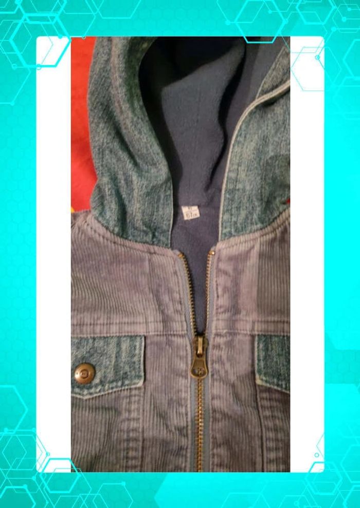 Veste a capuche doublée Manches et capuche en jeans Le reste en velours 6mois Je ne sais plus la marque 👶#3a6mois_laurence8777