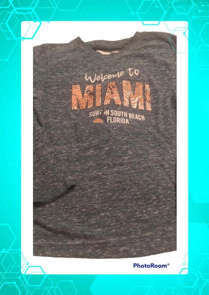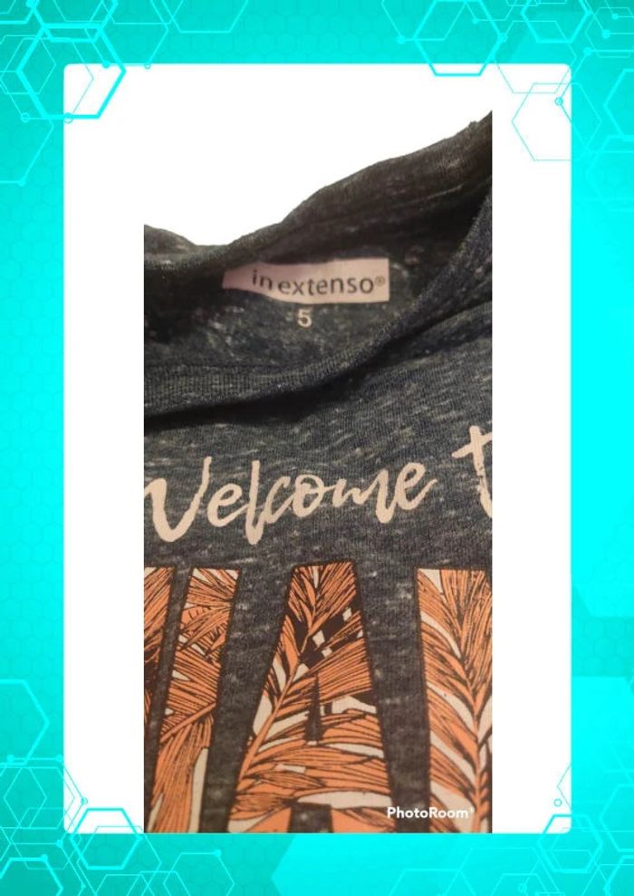 Maillot manches longues fin couleur bleu gris avec inscription et motif Taille notée : 5ans Marque: In extenso #5ans_laurence8777