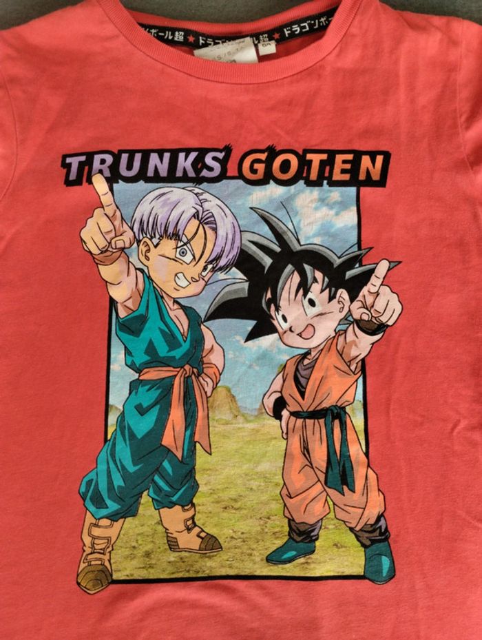 T shirt rouge Dragon Ball Léger accroc mais ne se voit pas une fois porté (voir photo). Dessin Trunks et San Goten enfants Très bon état. Taille notée : 6ans Marque : Dragon Ball #6ans_laurence8777