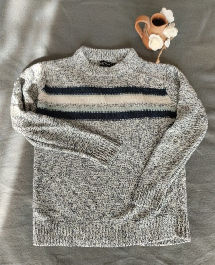Pull gris chiné avec ligne sur le haut. Plutôt léger. Taille notée : 6ans Marque : in extenso #6ans_laurence8777