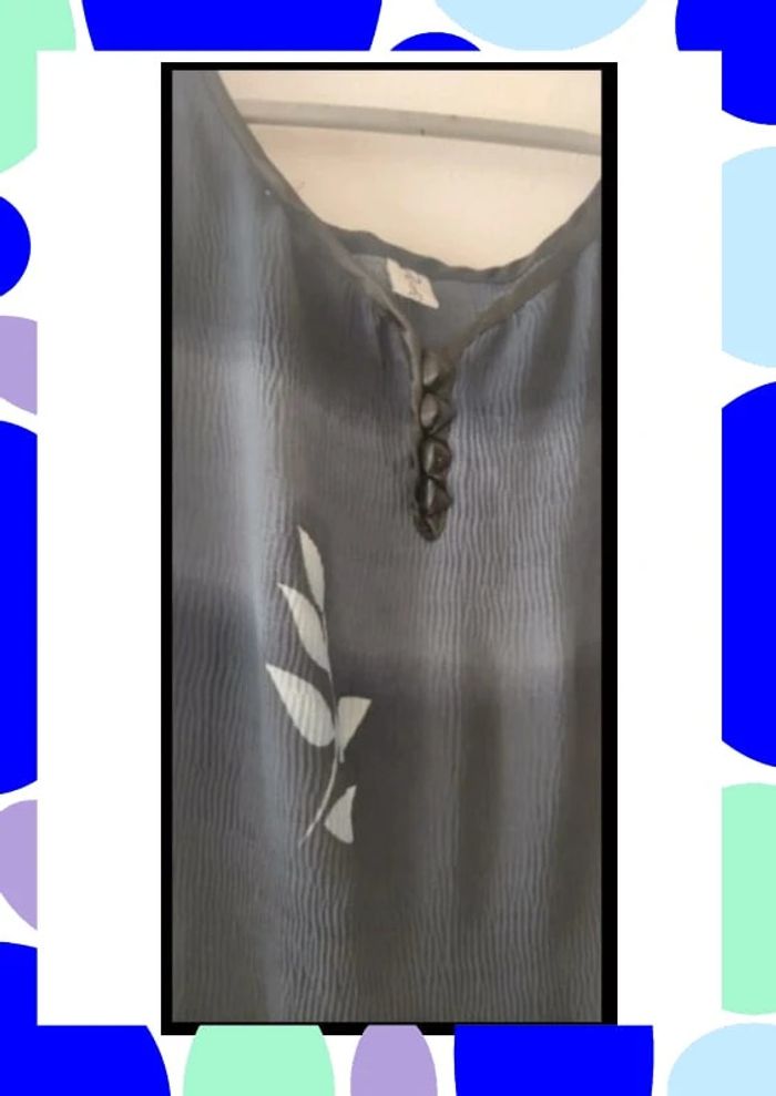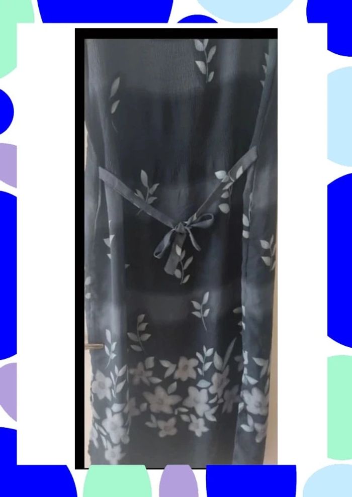 Longue robe transparente Dégradée de gris Se noue derrière Fentes sur les côtés Idéal l été a la plage avec un short ou un maillot de bain en dessous 130 cm de long 46 cm poitrine et mais élastique Étiquette coupée mais c est du 42 Réduction sur les lots activée Je vends aussi sur Kiabi #T42_laurence8777