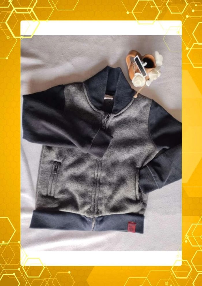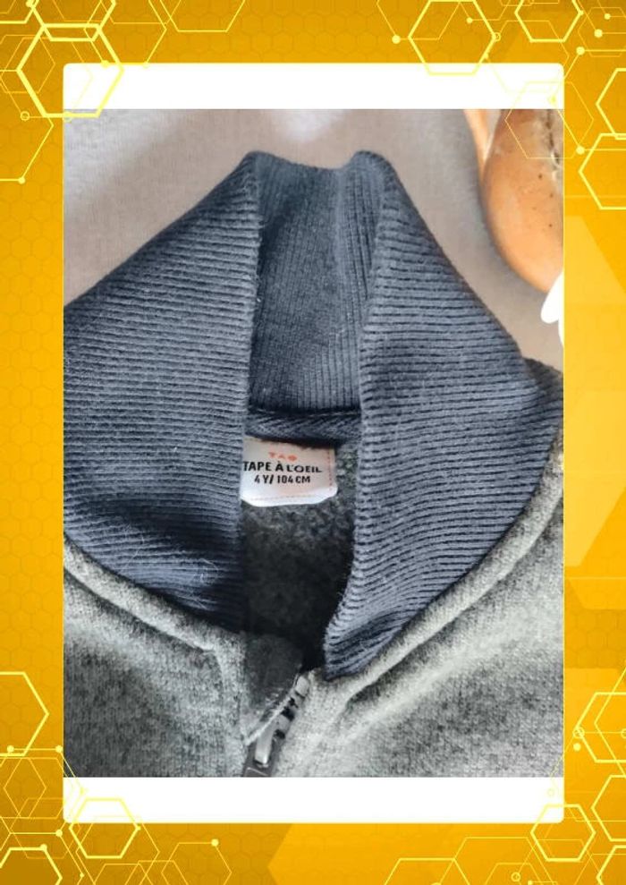 Veste zippée doublée gris chiné avec bords côtelés bleus marine Petites poches a fermeture éclair Mesures sur les dernières photos Taille notée : 4ans/104cm Marque : Tape à l'oeil Réduction sur les lots activée #4ans_laurence8777