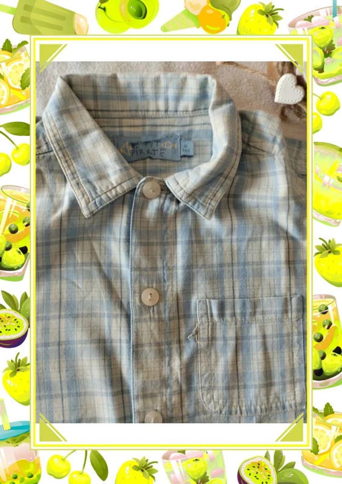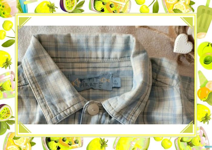 Belle chemise à manches courtes Jamais portée Couleurs bleu pastel Mesures sur les dernières photos Taille notée : 4ans Marque: Petits Pirates Réduction sur les lots activée #4ans_laurence8777