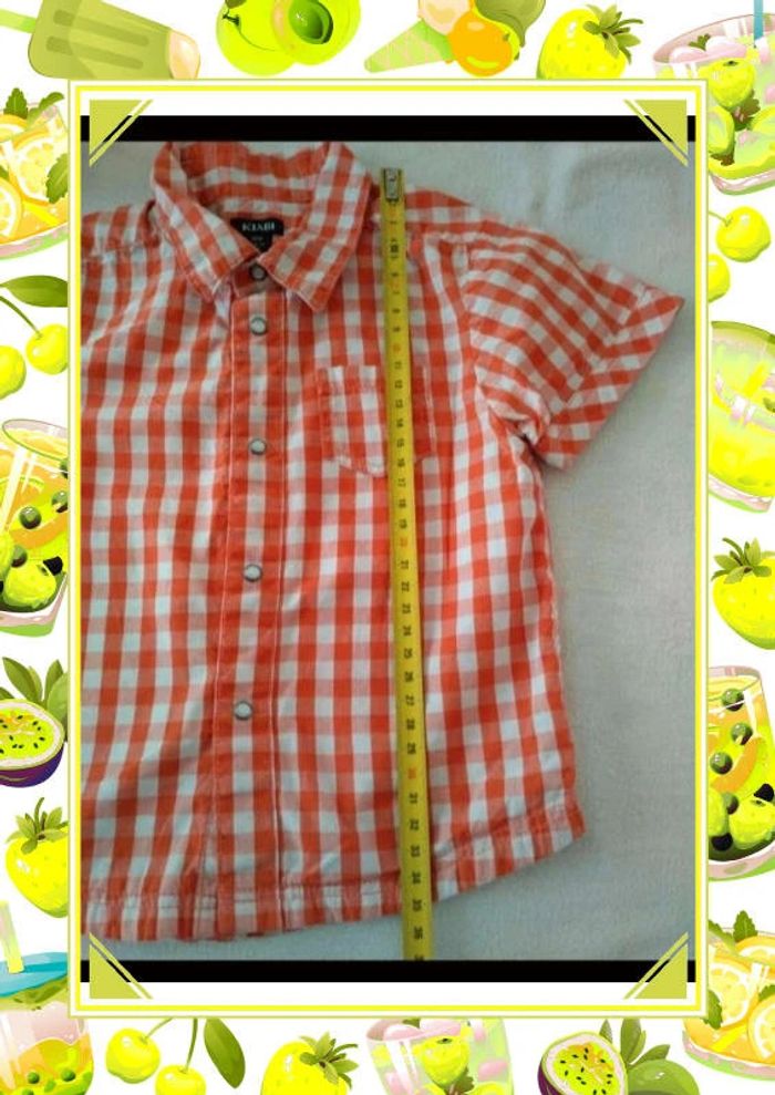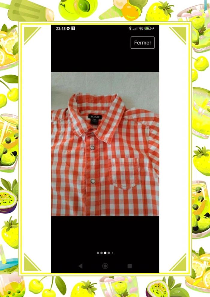 Chemisette à carreaux orange/corail et blanc Boutons pression Poche sur le devant Portée 2/3 fois Mensurations sur les dernières photos Taille notée : 18mois /77-82cm/11kg Marque : Kiabi Réduction sur les lots activée #18mois_laurence8777