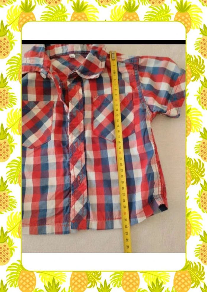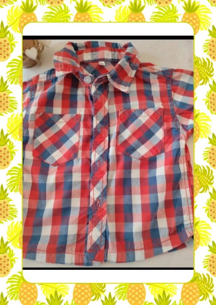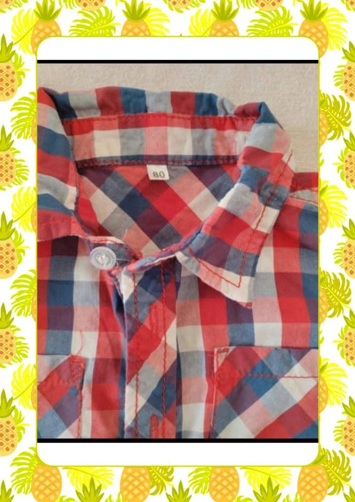 Chemisette à carreaux bleu blanc rouge 2 petites poches devant Bouton de rechange encore présent Juste lavée Mensurations sur les dernières photos Taille notée :80cm Marque: Zeeman Réduction sur les lots activée #12mois_laurence8777