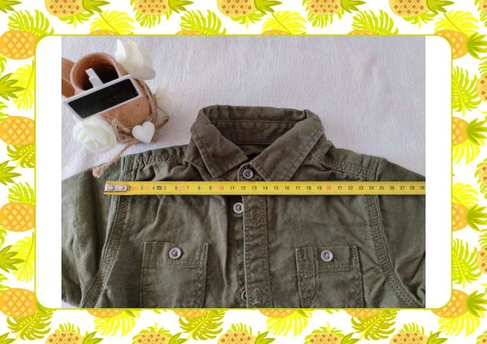 chemisette kaki à manches courtes peu portée 2 petites poches devant Taille notée : 18 mois / 77-82cm / 11kg Marque: Kiabi Dimensions notées sur les photos réductions sur les lots activées #18mois_laurence8777