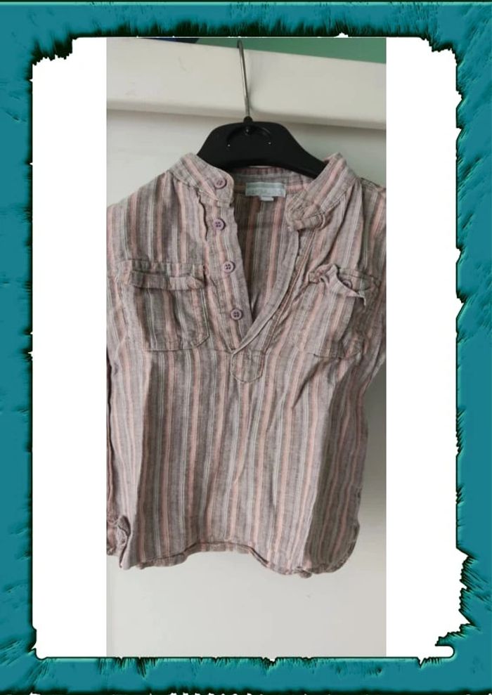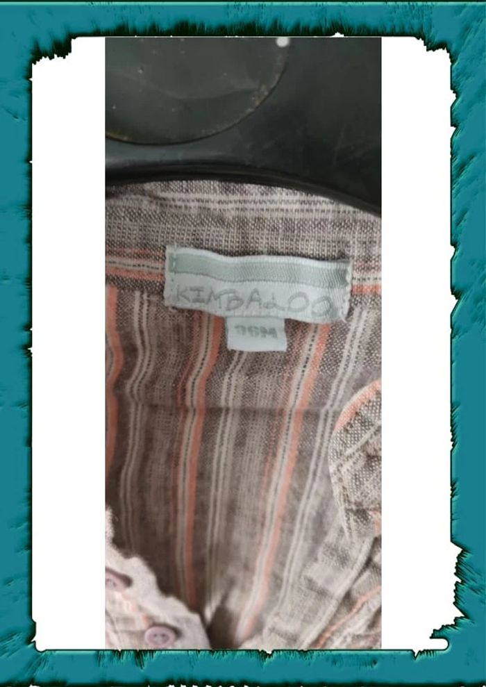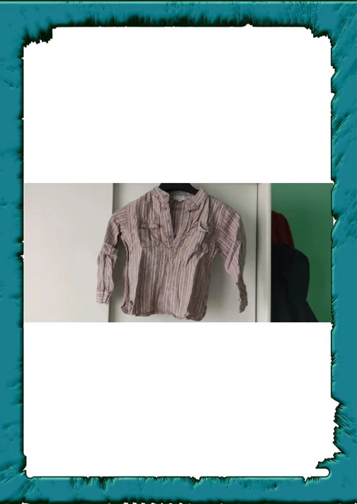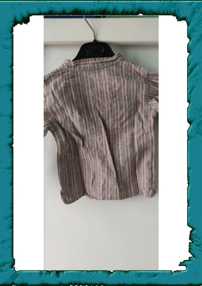 Chemise grise / beige à manches longues et rayures dans les tons orangés Boutons qui s arrêtent au milieu col Mao Taille notée : 18 mois Marque : Kimbaloo #3ans_laurence8777