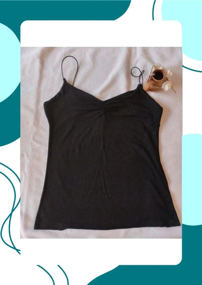 Débardeur noir avec cordelettes élastiques en bretelles Taille notée : L Marque : Jennyfer #T40_laurence8777