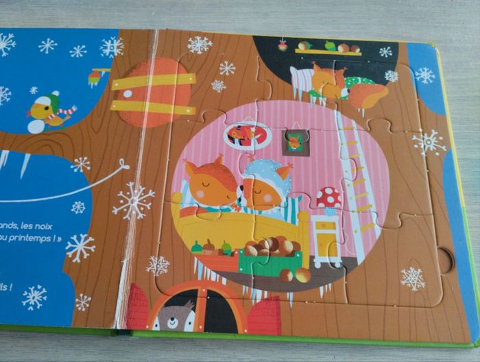 Livre de 4 grosses pages avec un puzzle de 9 pieces à la fin. Complet Le livre a du vécu mais il peut encore servir.