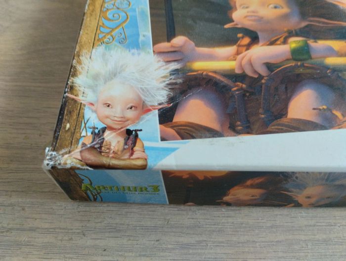 Puzzle de 100 pièces Arthur et les Minimoys 3 Complet Boite abîmée. Attention le trieur de pièces noté sur la boîte n y est pas Âge : 6ans