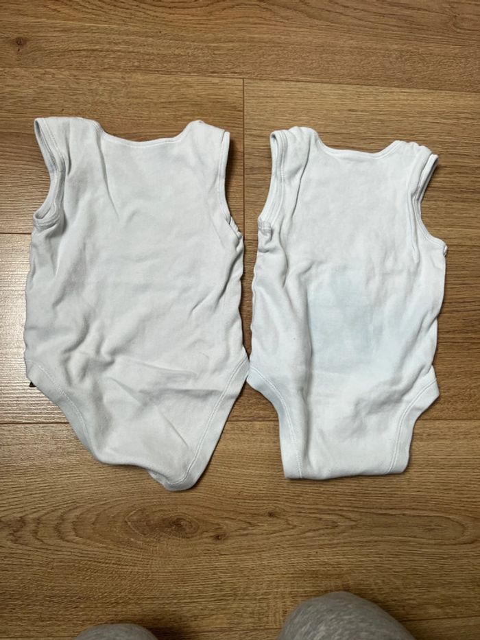 Lot de 2 bodies manches courtes type marcel Une petite tache a l’intérieur de l’entrejambe visible sur la dernière photo Taille 9-12 mois