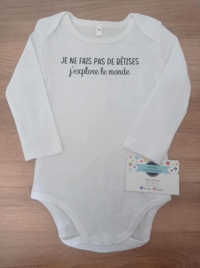 Body blanc Mixte Je ne fais pas de bêtises j'explore le monde Disponible du 1mois au 36mois en manches courtes ou longues, dites moi ce dont vous avez besoin et je ferais l'annonce avec la bonne taille =) #Body_KdoetCo #Bebe_KdoetCo Si vous souhaitez plusieurs articles dans mon dressing, envoyez moi un message pour que je puisse tout réunir en une seule annonce car vinted ne permet pas de faire des lots avec les dressings pros