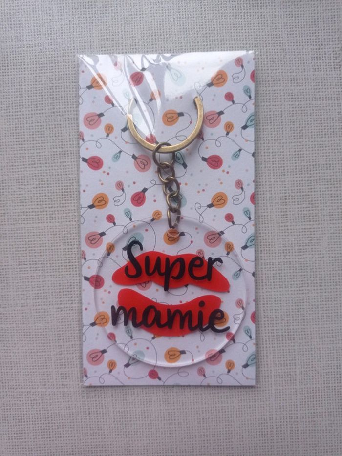 Porte clé rond Diamètre 5cm Super mamie #PorteCle_KdoetCo #Mamie_KdoetCo