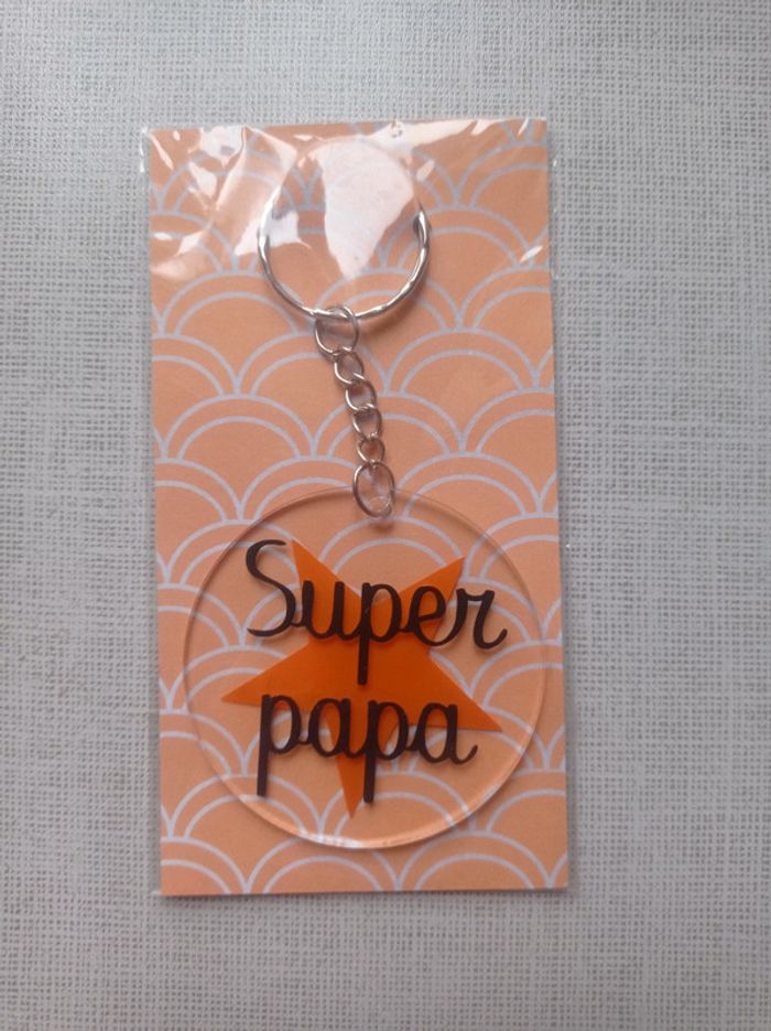 Porte clé rond Diamètre 5cm Super papa #PorteCle_KdoetCo #Papa_KdoetCo
