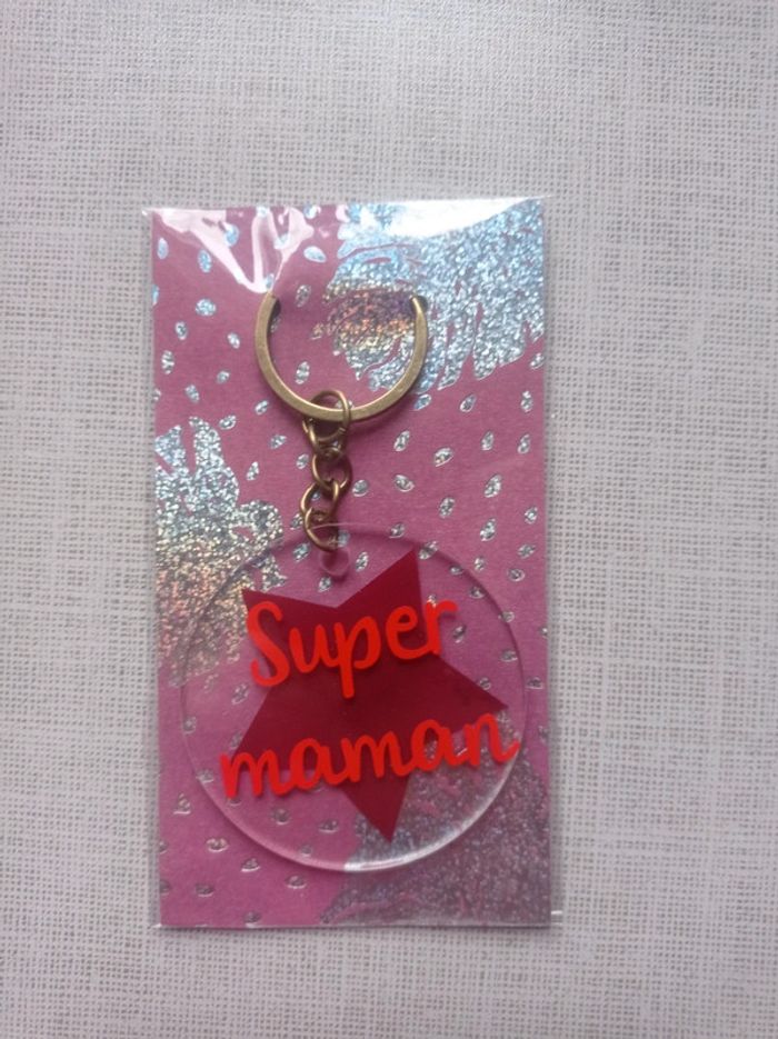Porte clé rond Diamètre 5cm Super maman #PorteCle_KdoetCo #Maman_KdoetCo