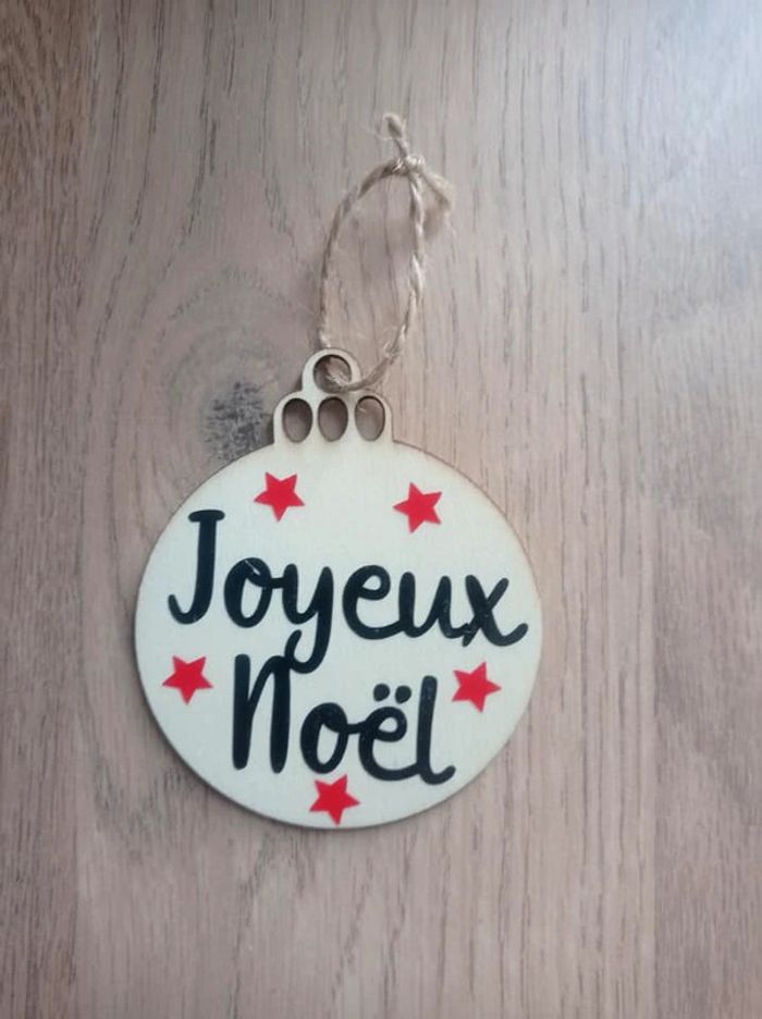 Décoration en bois Joyeux Noël rouge et noir Environ 8cm de diamètre #Noel_KdoetCo #Deco_KdoetCo