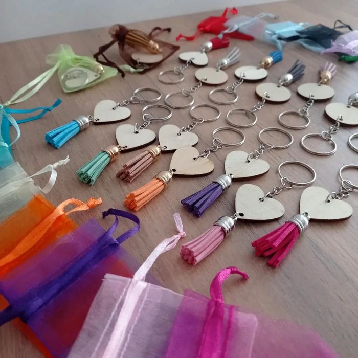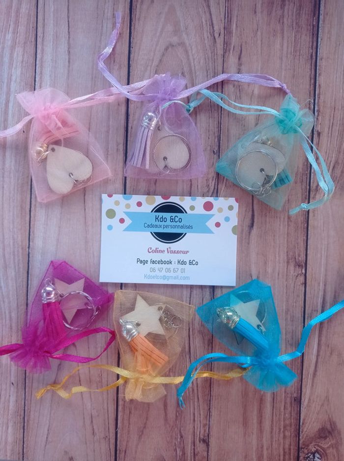 Bijou de sac / Porte clé bois Avec sachet organza #Femme_KdoetCo #Ecole_KdoetCo #Maison_KdoetCo