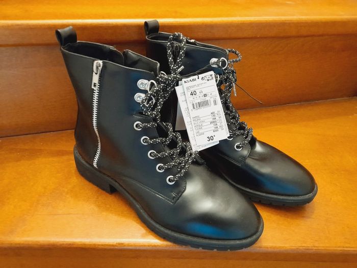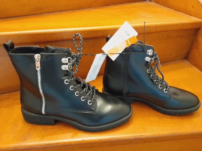 Chaussures Bottines noires neuves Pointure 40 100 % Élastomère thermoplastique- Chaud Un côté fausses fermetures et de l'autre vraies fermetures. Lacets #delfyned3Chaussures40Femme