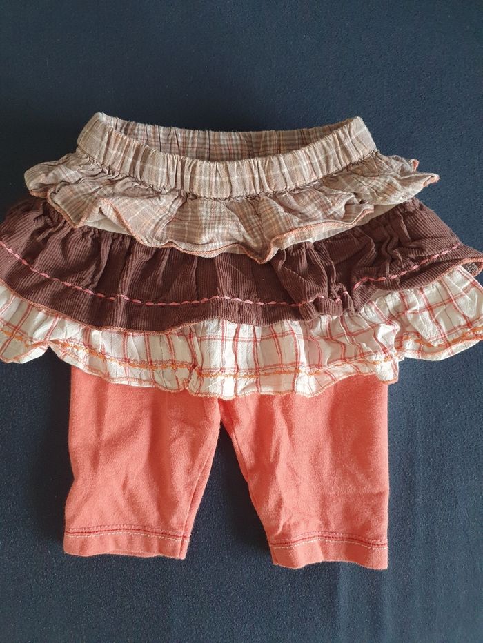 Legging-jupe corail et marron taille 6 mois