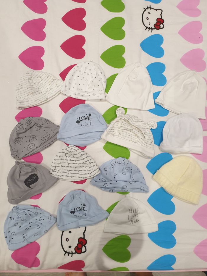 Bonne je vend 15 bonnets naissance neuf très peu servi en très bon état