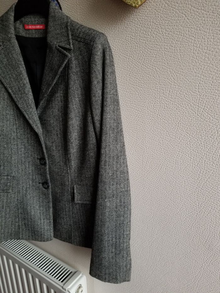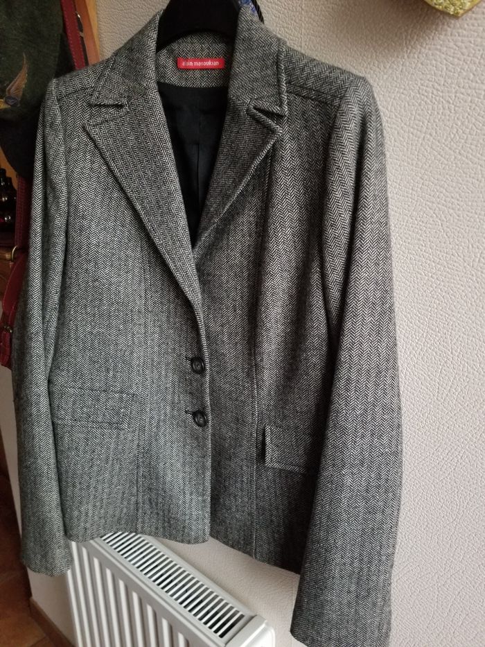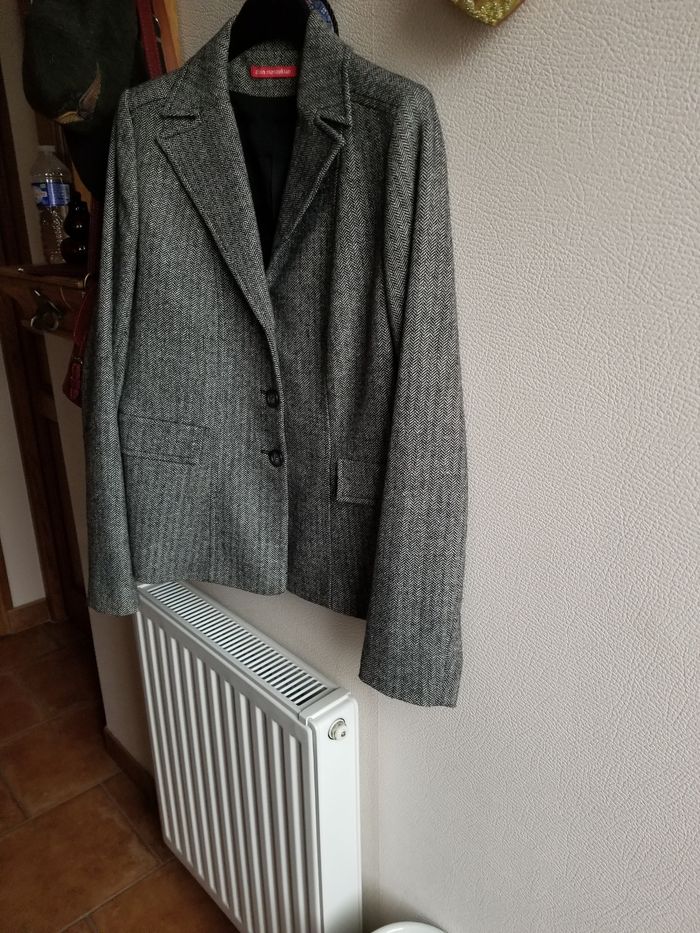 En très bon état. Très peu porté. Entièrement doublée. 2 fausses poches de chaque côté avec un rabat. Matière : laine, polyester et elasthane.