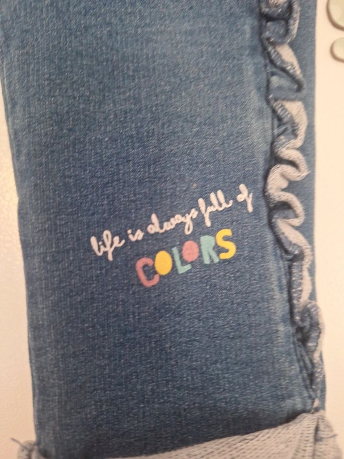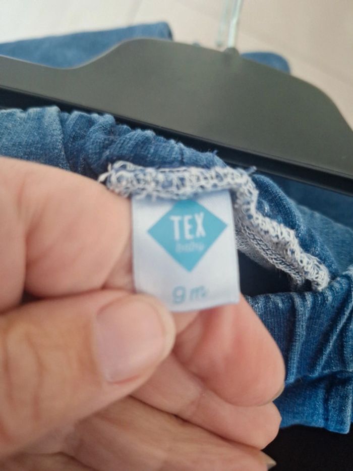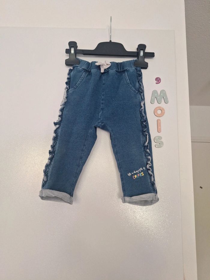 Jolie pantalons décontracté entre jeans et survêtement taille 9 mois froufrou sur les côtés très bon état porté 2.3x #9moiskarlyne78