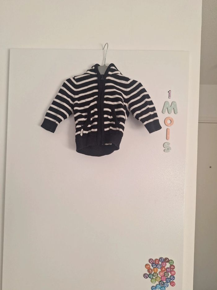 Gilet zippée rayé noir et blanc capuche taille 1 mois très bon état #1moiskarlyne78