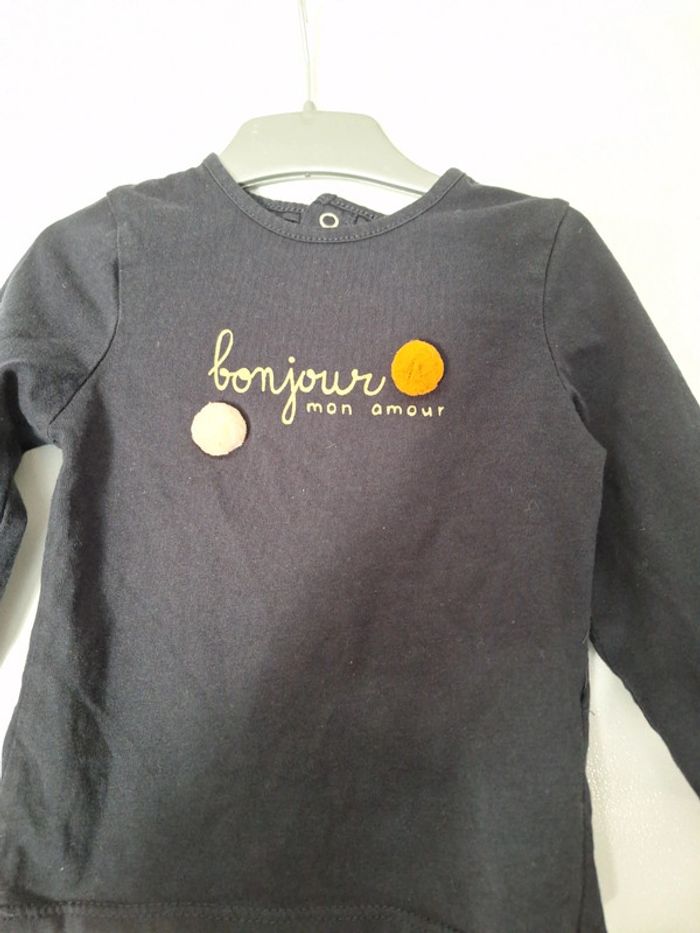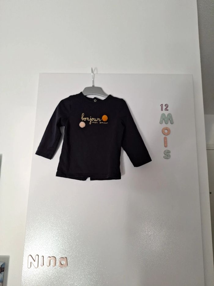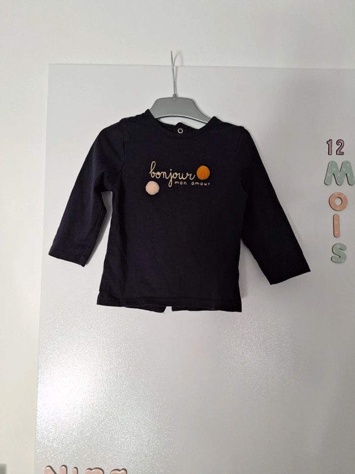 Tee-shirt longue manche pression dans le dos "bonjour mon amour" 12 mois très bon état #12moiskarlyne78