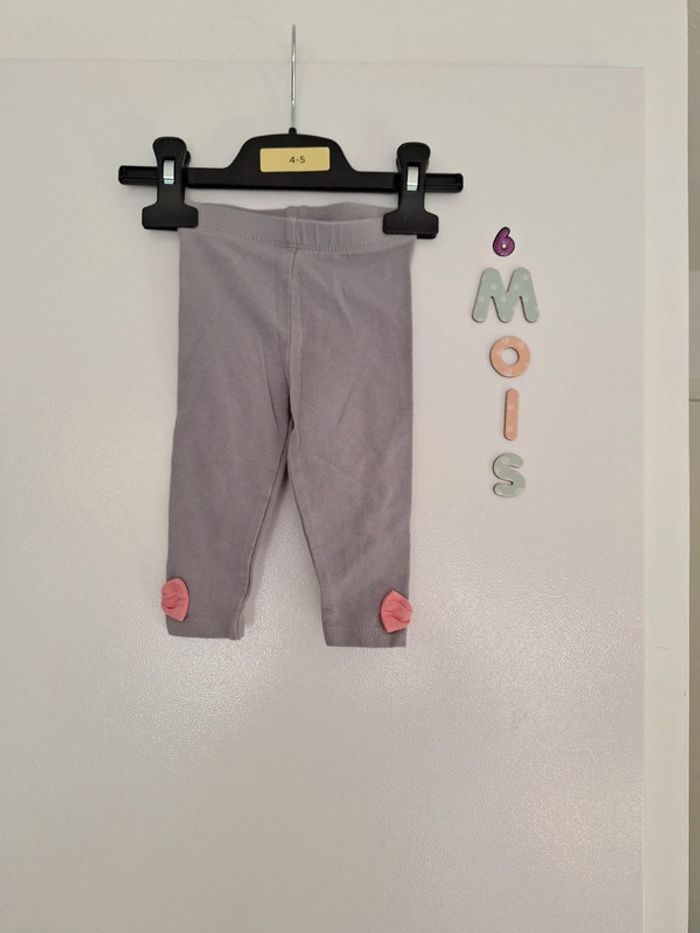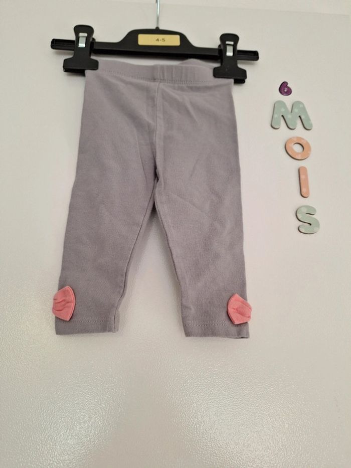 Leggings gris nœuds rose taille 6mois étiquette coupé tape à l'œil #6moiskarlyne78