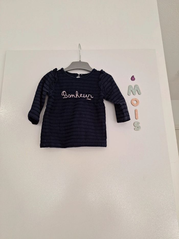 Tee-shirt manche longue " bonheur "creeks taille 6 mois très bon état