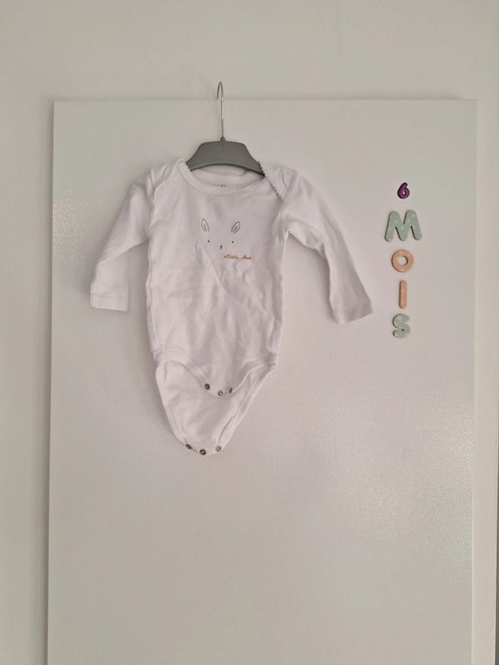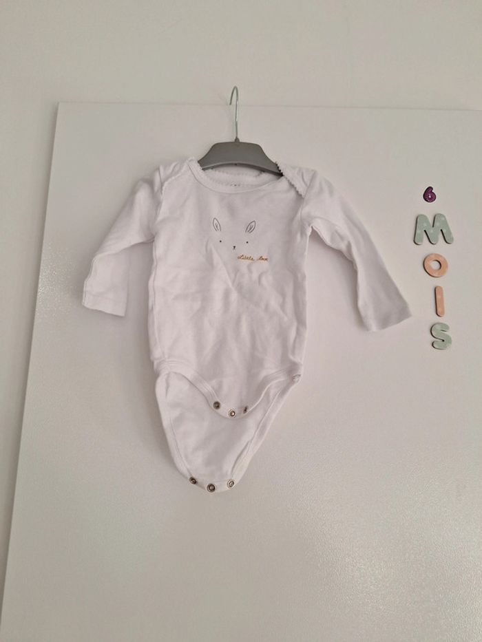 Bodie manche longue blanc kiabi 6 mois très bon état porté 2x