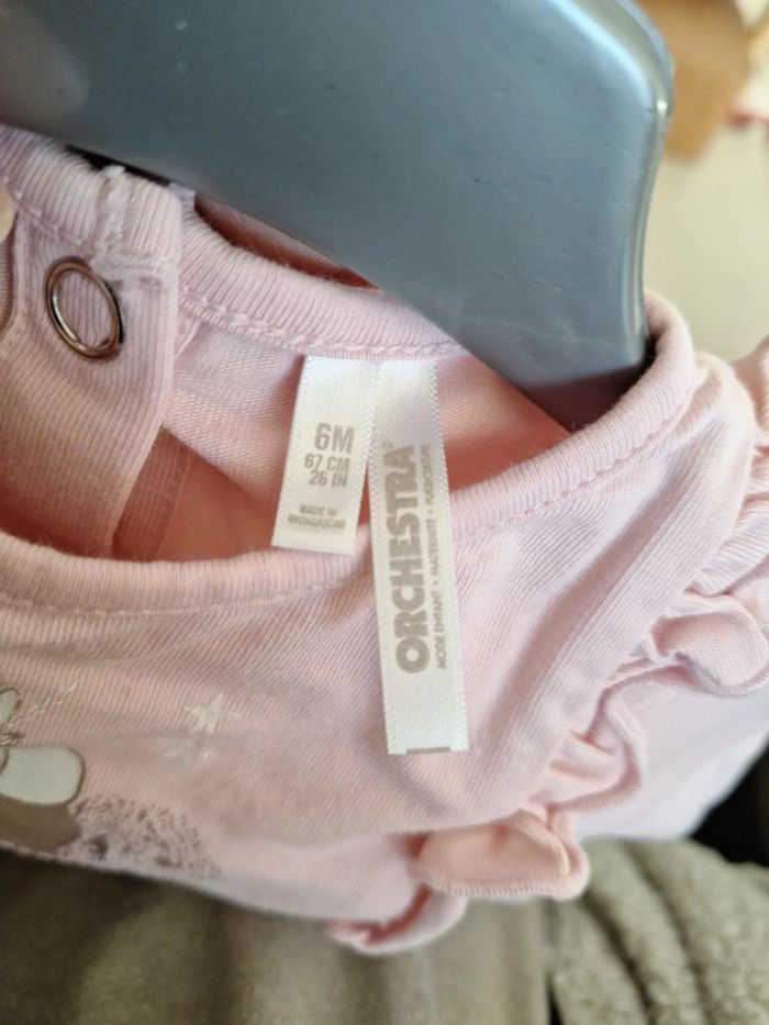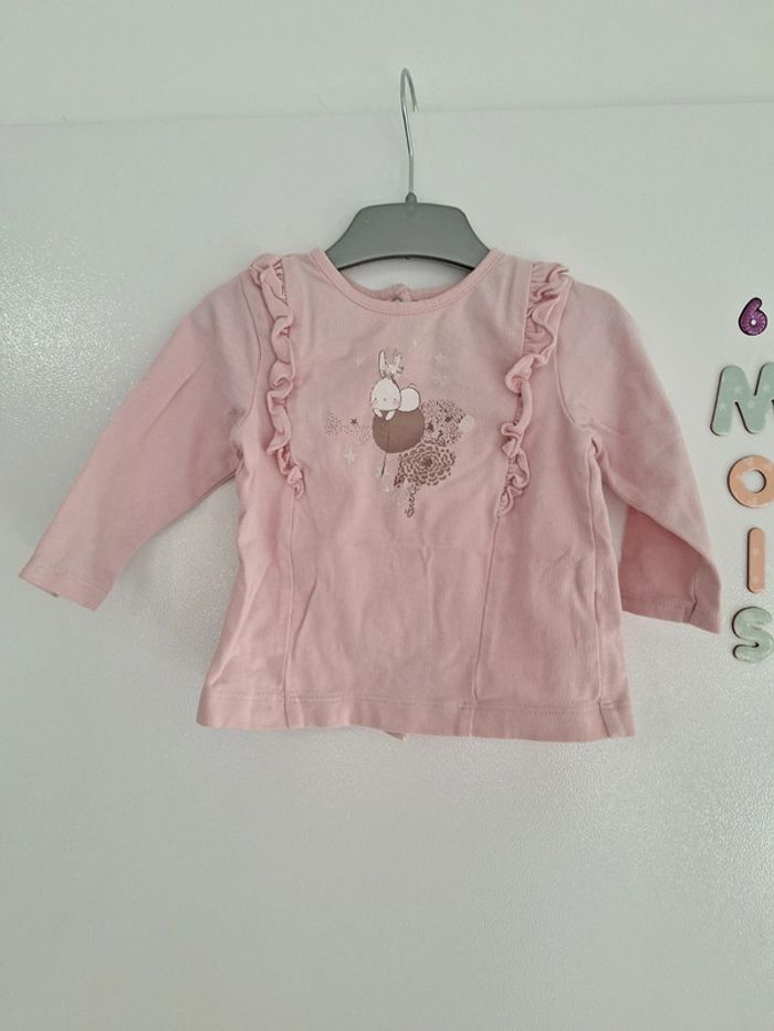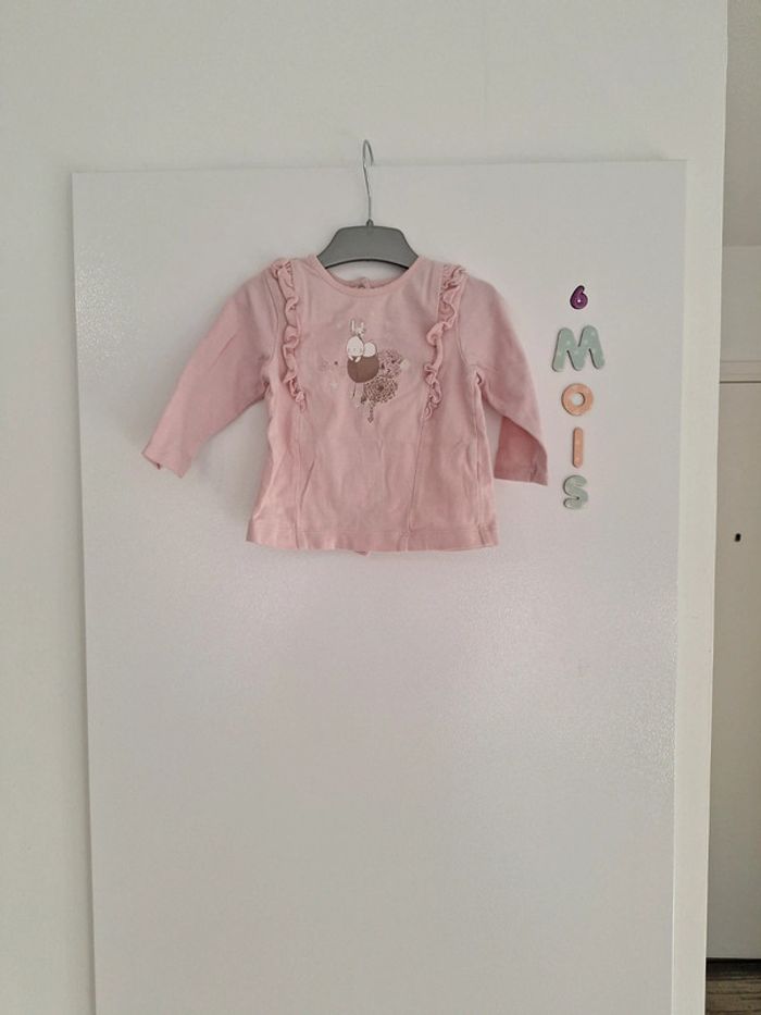 Tee-shirt manche longue " lapin "froufrou sur les côtés orchestra taille 6 mois très bon état porté 2x #6moiskarlyne78