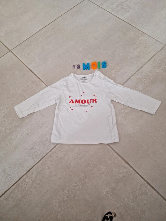 Tee-shirt manche longue "amour" 12 mois kiabi très bon état #12moiskarlyne78