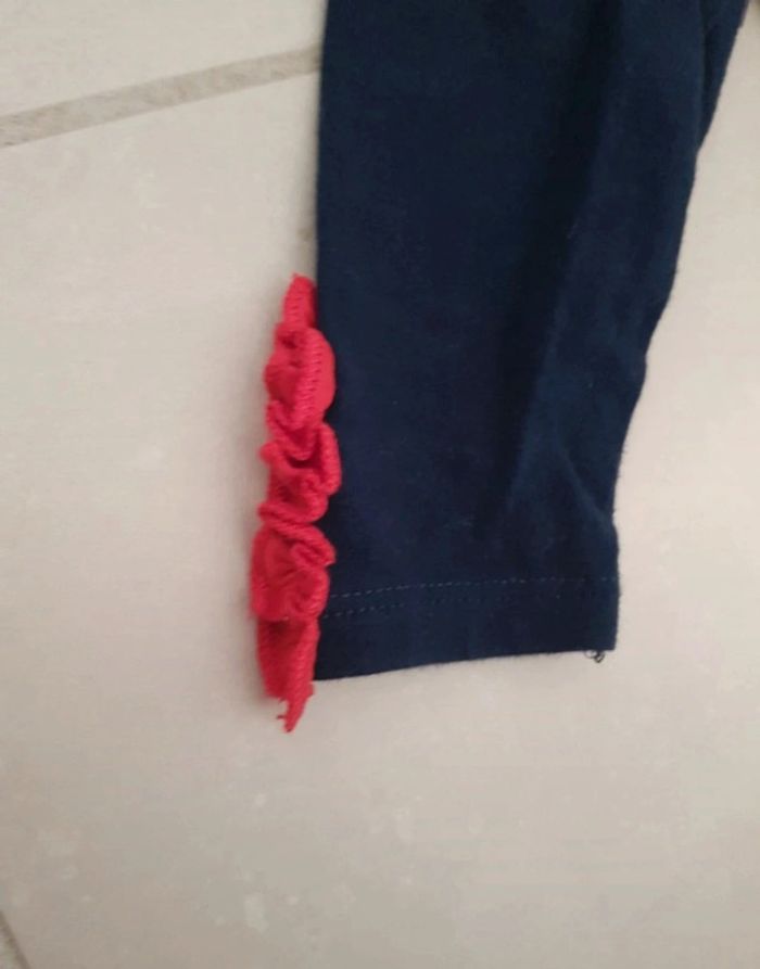 Legging bleu Marine froufrou rouge en bas 1.3 mois bon état #bébé #leggings #froufrou #1moiskarlyne78 #3moiskarlyne78