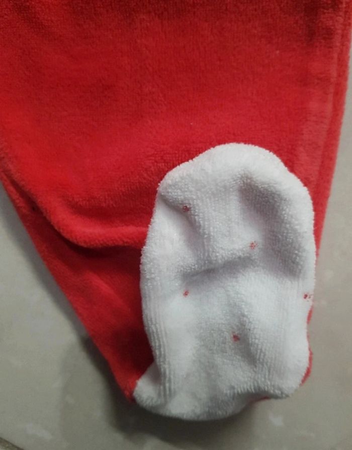 Bas de pyjama Disney taille 9 mois rouge et pieds blanc à petit pois rouge très bon état porté 2x servi pour deguisement Noël 🎅 #9moiskarlyne78
