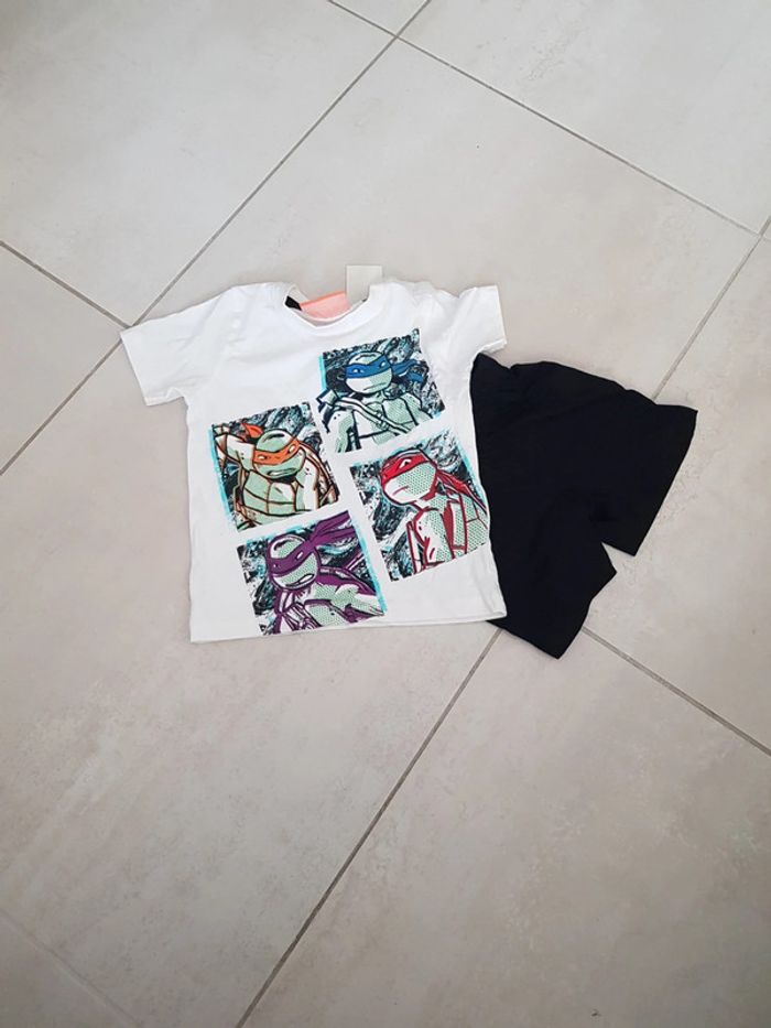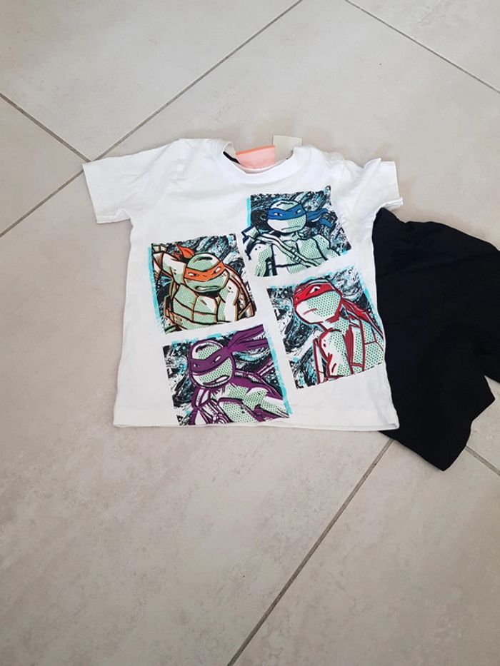 Ensemble 2 pièces tee-shirt+ short tortue ninja neuf étiquette taille 86.92cm 24.36 mois