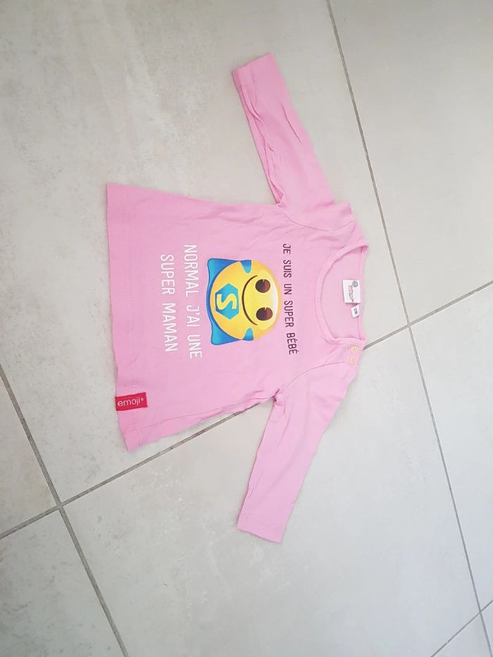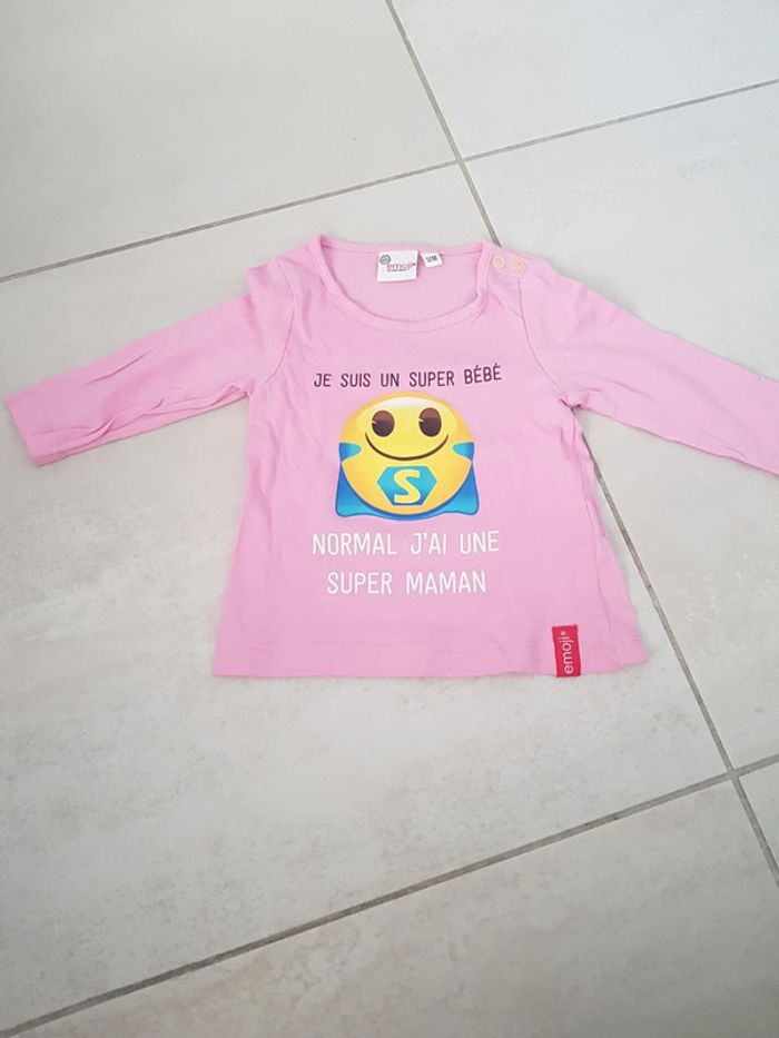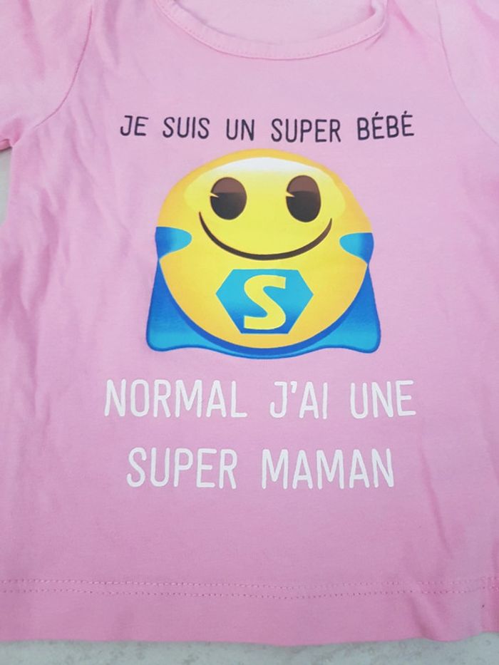 Tee-shirt "je suis un super bébé normal j'ai une super maman" manche longue emoji neuf sans étiquette porté 1x pour une photo