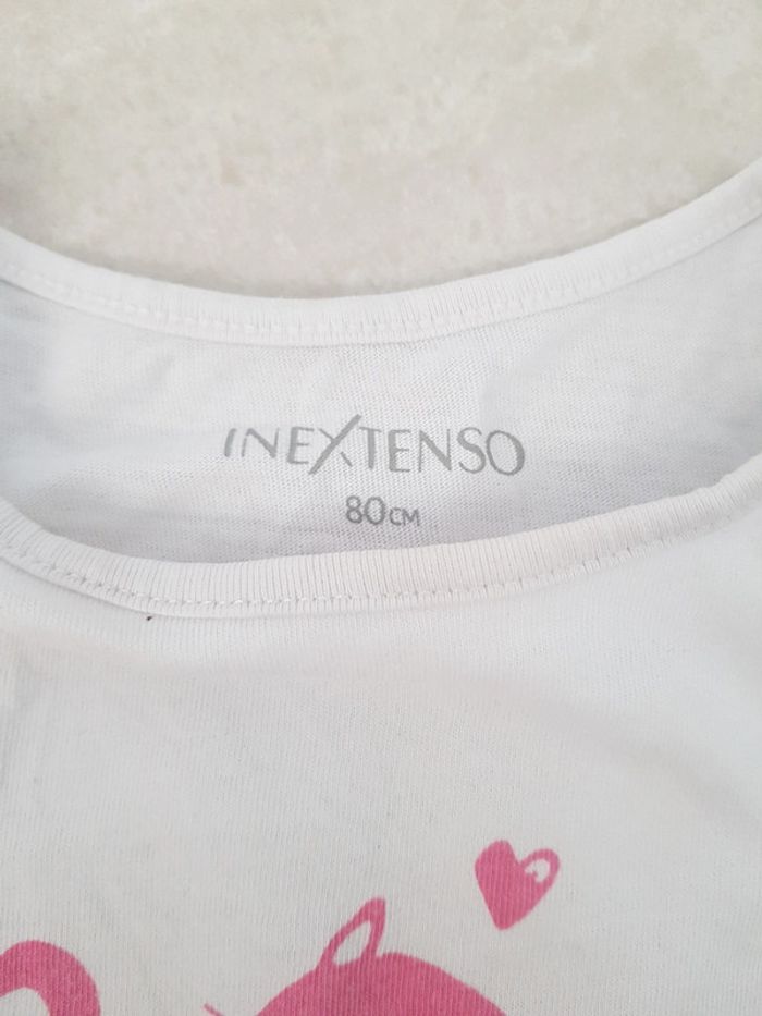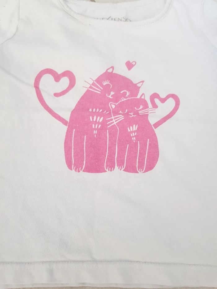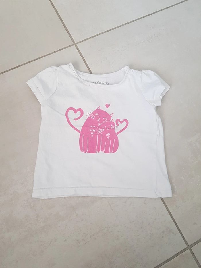 Tee-shirt blanc petit chat rose bon état 9.12 mois 80cm