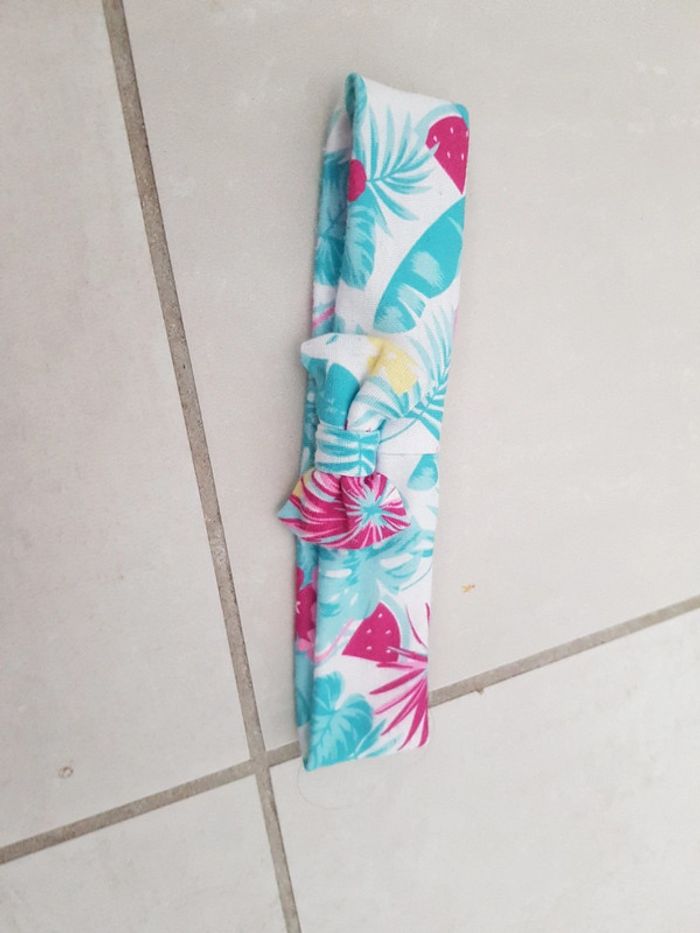 Bandeau fleurie avec nœud coloré très bon état porté quelque fois taille 0.3mois