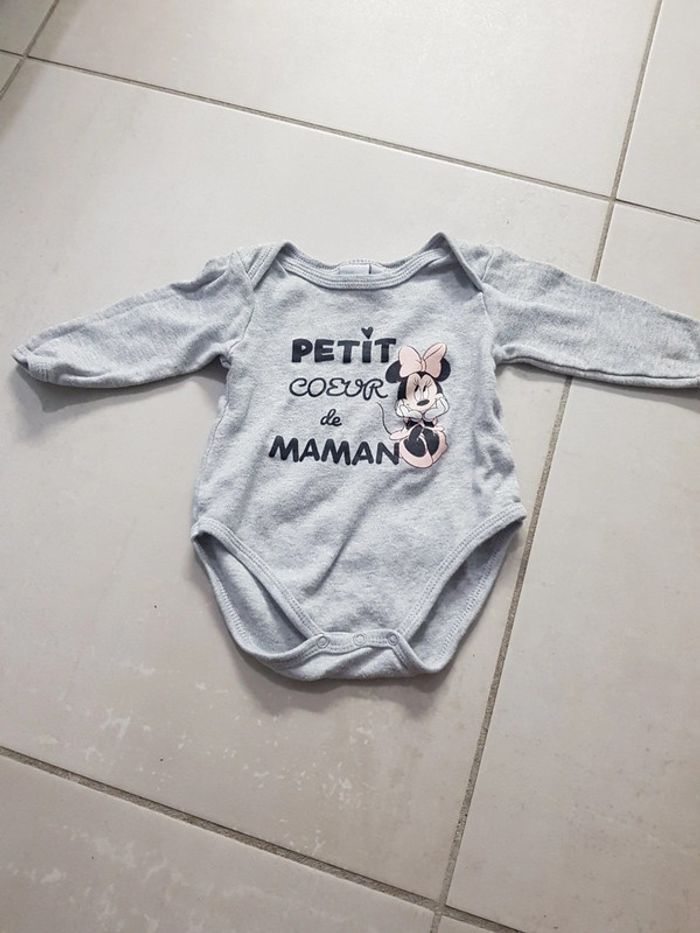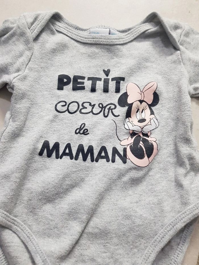 Boddy gris 6 mois Minnie Disney " petit coeur de maman " bon état