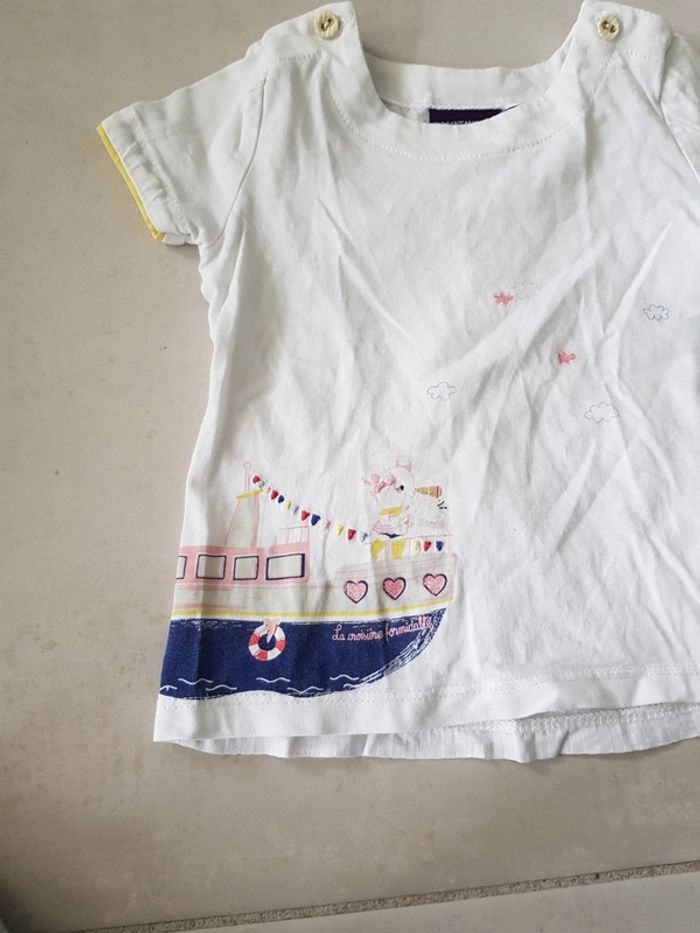 Tee-shirt Sergent major 12 mois très bon état blanc avec motif bateau