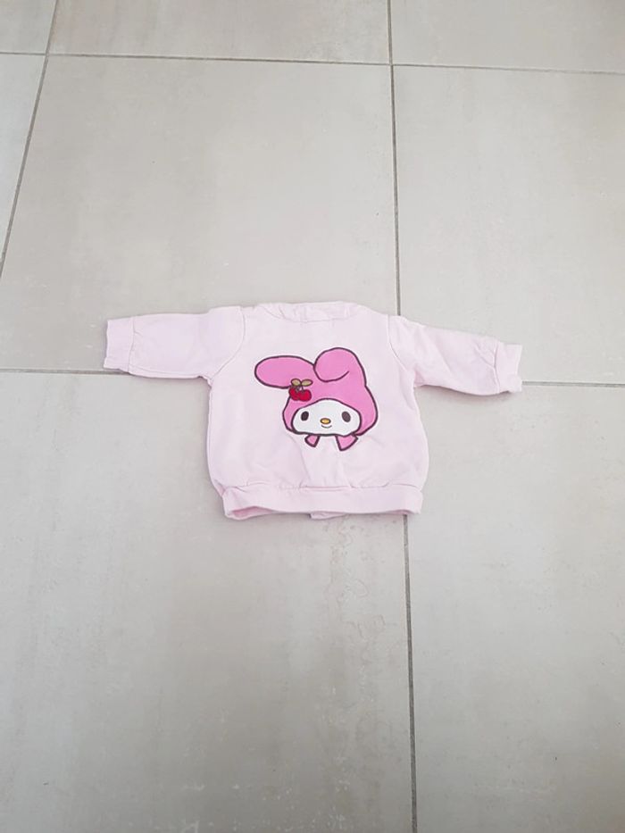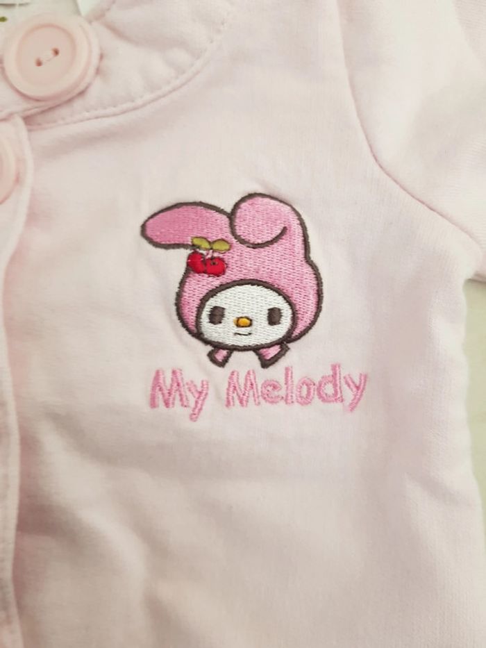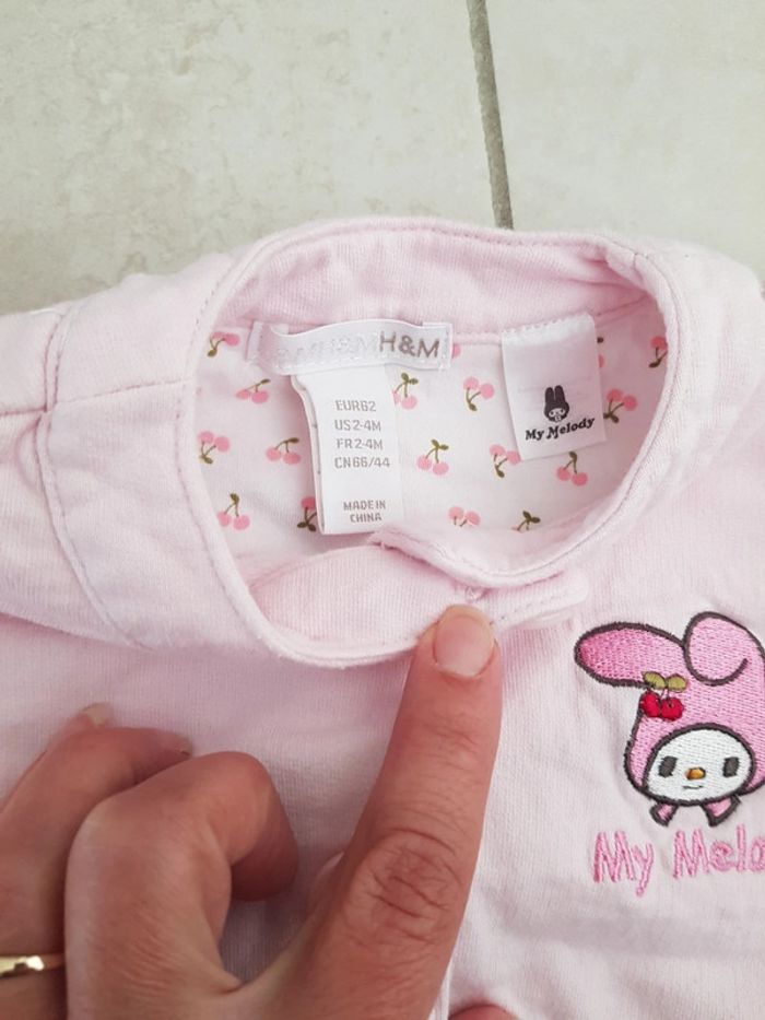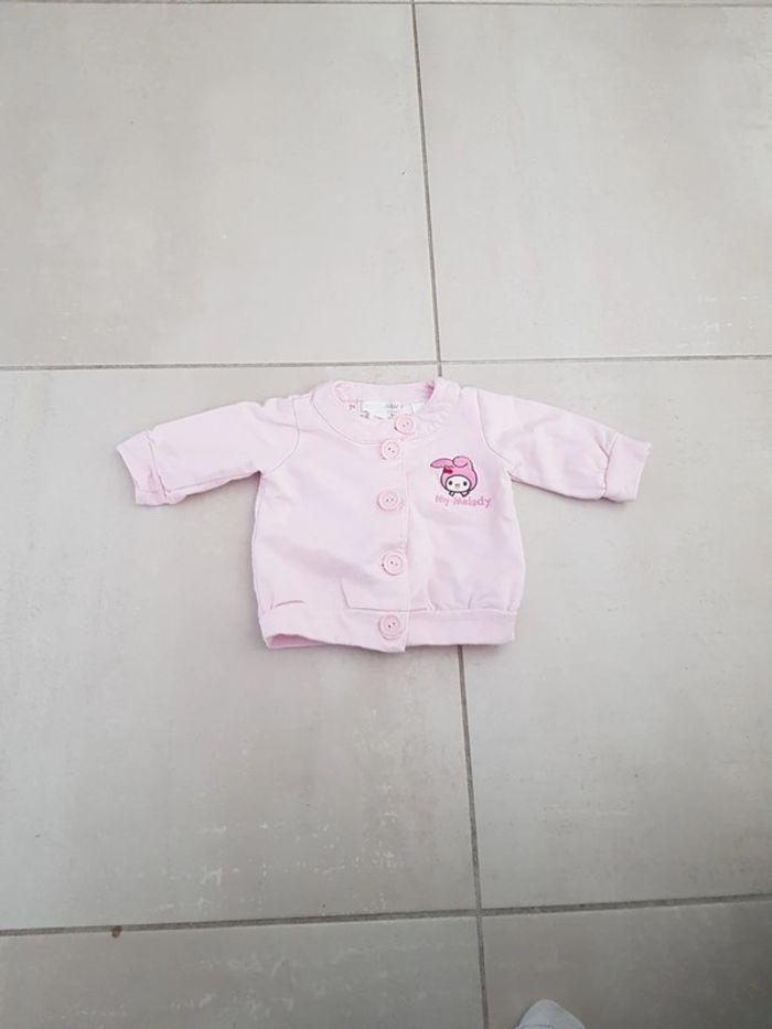 Gilet rose pâle fermeture avec bouton 2.4 mois 62cm gros écusson dans le dos et petit sur le devant porté 2.3x très bon état H&M my melody