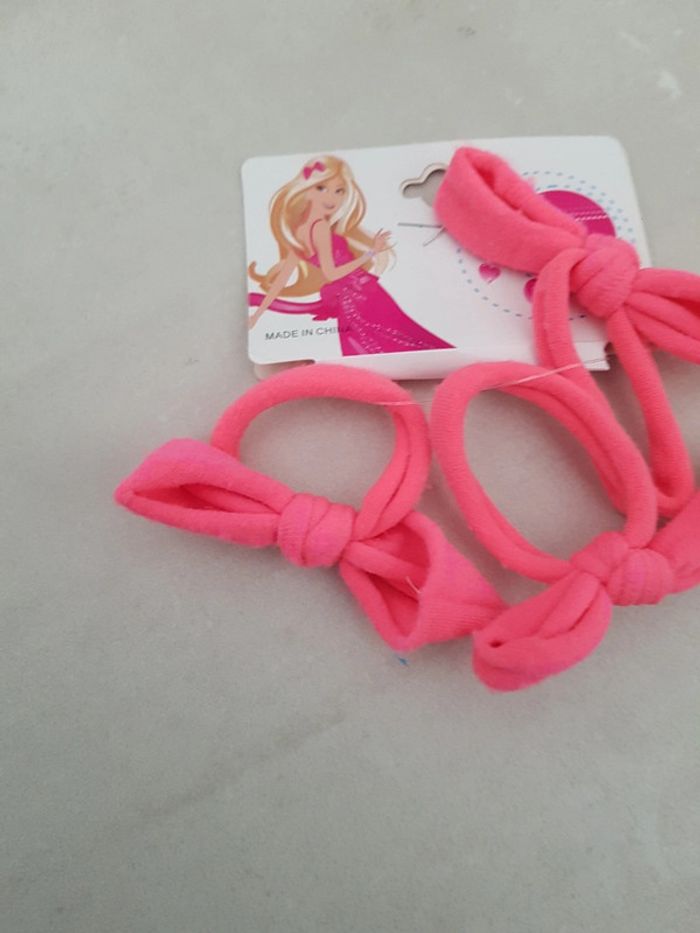 Lot 3 élastiques nœud flo rose fluo neuf avec étiquette