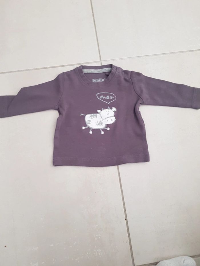 Tee-shirt longue manche gris vache très bon état porté 1.2x taille 0.2 mois #teeshirt #bébé #3mois #vache