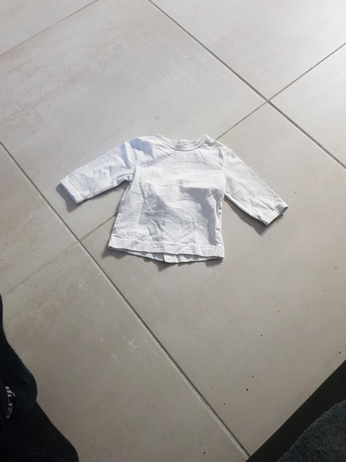 Tee-shirt longue manche blanc fermeture pressions dans le dos kitchoun très bon état porté 1x 3mois