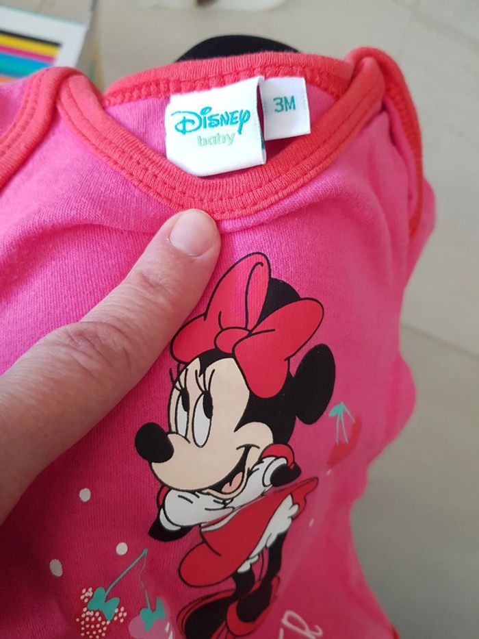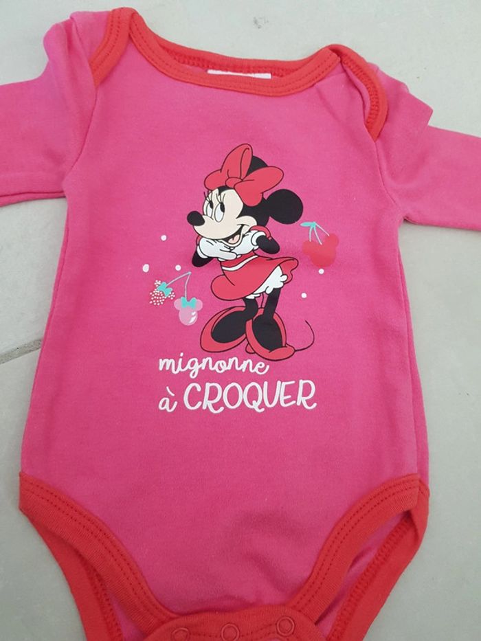 Bodie bébé Disney 3 mois rose minnie "mignonne à croqer" très bon état porté 2x #bébé #bodies #body #3mois #neufsansétiquette #disney #minnie