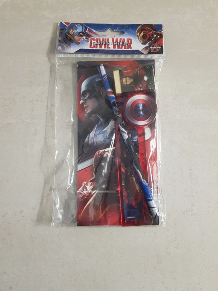 Pochette Marvel capitain américa : carnet, gomme, taille crayon, crayon, règle. Neuf emballé